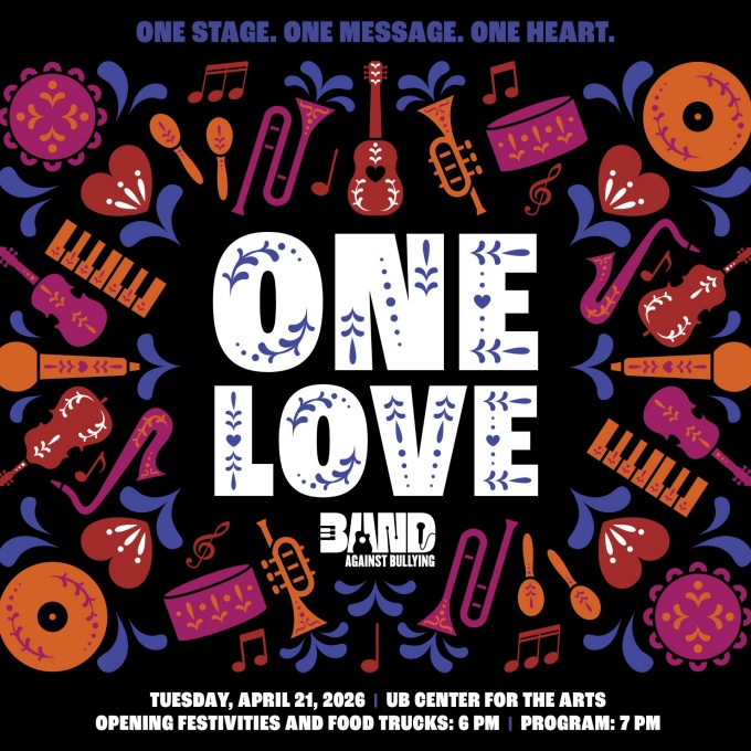 On April 21st at the University at Buffalo, Center for the Arts, voices are lifted, powerful messages are shared, and students take center stage. Join us for an unforgettable night featuring inspiring student performances, local celebrity guests, and special performers all coming together to create a community united against bullying. Connect with local resources, feel the energy in the room, and be part of the movement. Kickoff festivities begin at 6:00PM with performances at 7:00PM! For more information visit the BAND Against Bullying website.